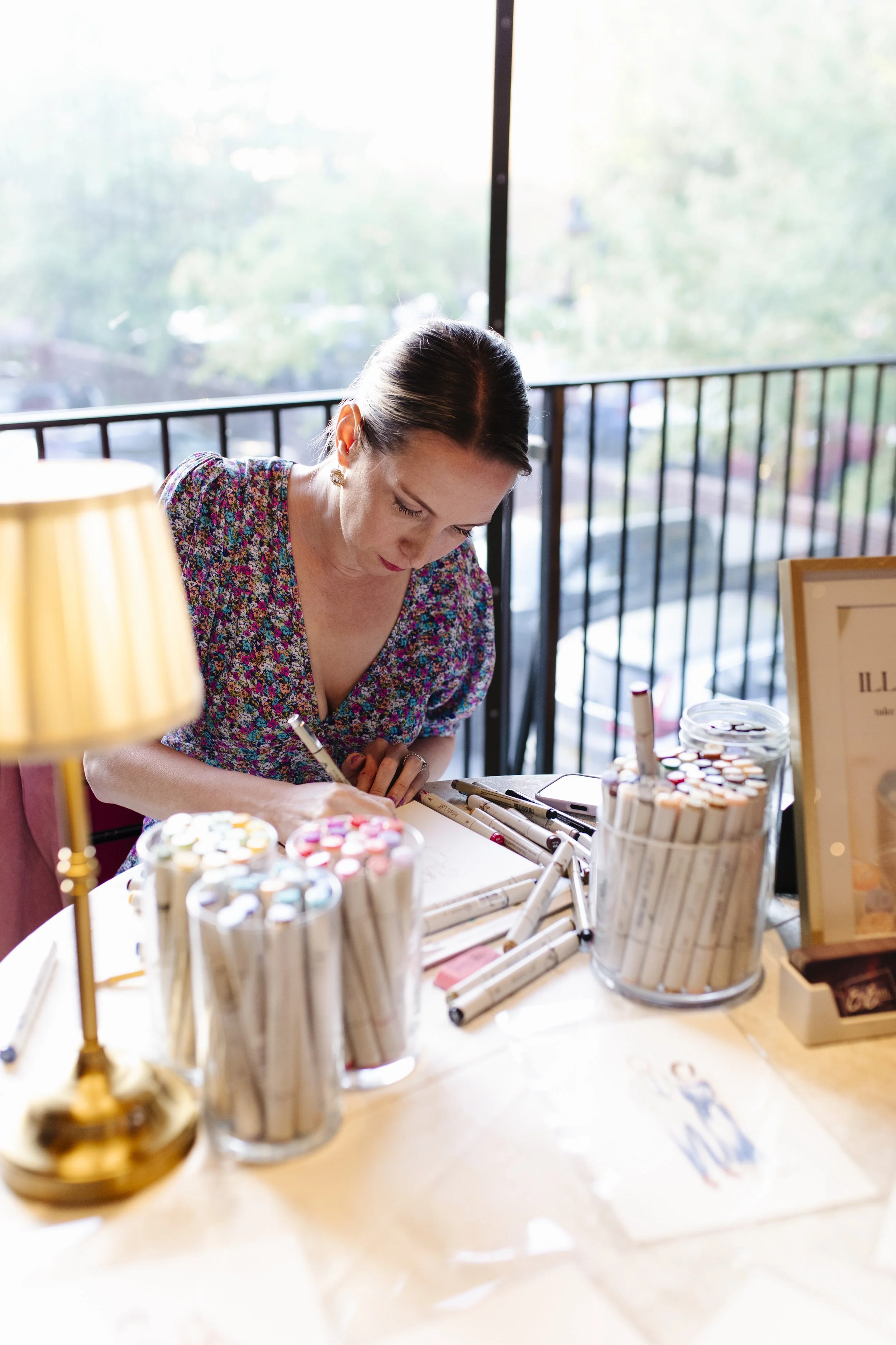 These one of a kind illustrations are hand drawn using pencil and ink and colored with professional markers on matte artist paper. Guests get to take home their finished piece as the perfect thank you gift!